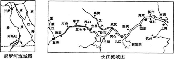 (2)试从气候条件和水系条件分析流经三峡工程的年径流量远高于流经阿斯旺工程的年径流量的原因:
