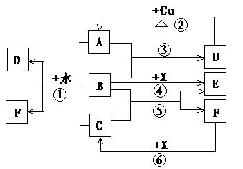 (5)由图中所给反应关系判断B、C、D、X氧化性从强到弱的顺序是(用化学式作答) 。