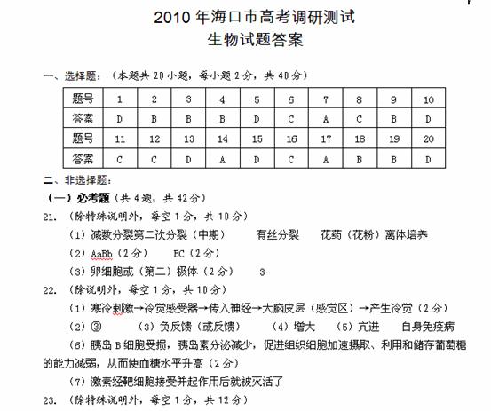 I. (1)基因突变 (2)基因突变频率 不定向性 (3)体细胞具有全套遗传物质