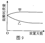 ① 浓盐酸的质量和放置天数关系的曲线(见右图)正确的是 (填写“甲”或“乙“)。