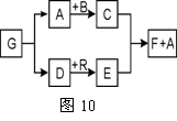 现有A、B、C、D、E、F、G七种物质,其中D为具有助燃性的气体单质,B、C、F三种物质都是含钙元素的化合物,它们之间在如图10所示关系: