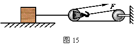 39.滑轮组是日常生活中常用的简单机械,它既方便又省力。如图15所示,一个质量160kg,底面积为1m2、高为0.1m的长方体物块,通过滑轮组在60N拉力作用下以0.4m/s的速度作匀速直线运动。已知物块受到的滑动摩擦力为物重的0.1倍(g取10N/kg )。求: