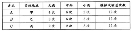 三种人工降雨方式分别对甲、乙、丙三地实施人工降雨,其试验数据统计如下: