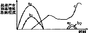 A.表示病毒增殖的曲线是a1、a2,表示人体患病程度的曲线是b1、b2,表示抗体产生的曲线是c
