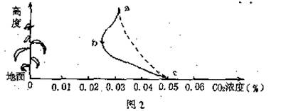 4.图2表示夏季玉米地里,距离地面高度不同处CO2浓度不同,图中实践表示上午10时的测定结果,虚线表示夜晚22时的测定结果。下列相关叙述错误的是 ( )