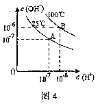12.在不同温度下,水达到电离平衡时c(H+)与c(OH-)的关系如图4所示,下列说法正确的是 ( )