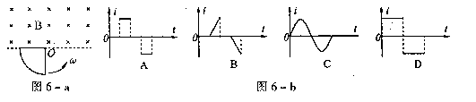 匀速转动。设线框中感应电流方向以逆时针为正,那么在图6-b中能正确描述线框人图6-a中所示位置开始转动一周的过程中,线框内感应电流随时间变化情况的是 ( )