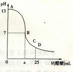 D.曲线上A 、B 间的任意一点,溶液中都有:c(CH3COO-)>c(Na+)> c(OH-)>c(H+)
