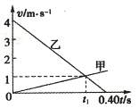21.甲和乙两物体在同一直线上运动,它们在0~0. 4s 内的v-t 图象如图所示。若两物体均只受到彼此的相互作用,则甲、乙的质量之比和图中时刻t1分别为