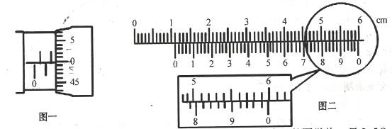 23. (12 分)( 1 ) ( 4 分)图一中螺旋测微器读数为 mm。图二中游标卡尺(游标尺上有50 个等分刻度)读数为 cm 。