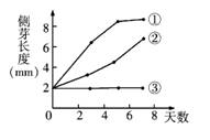 某科研小组在研究植物顶端优势现象时,将大小相近的同种植物分为①②③三组,分别进行如下处理:①摘除顶芽;②保留顶芽,用2mg/L的细胞分裂素处理侧芽;③保留顶芽。实验结果如右图所示,根据曲线可以得到的结论是