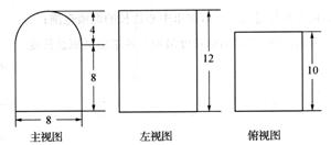 已知某个几何体的三视图如图(主视图的弧线是半圆),根据图中标出的数据,
