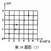 ② 用伏安法测金属丝的电阻时,测出了包括(0,0)在内的6组电流I和电压U的值,并已经标在了如图(3)所示的坐标纸上,请用铅笔和直尺在坐标纸上画出合理的图线,并求出该段金属丝的电阻Rx=__________Ω。