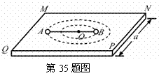 35.(18分)如图所示,一水平光滑、距地面高为 h、边长为 a 的正方形 MNPQ 桌面上,用长为 L 的不可伸长的轻绳连接质量分别为mA 、mB 的 A、B 两小球.两小球在绳子拉力的作用下,绕绳子上的某点 O 以不同的线速度做匀速圆周运动,圆心 O 与桌面中心重合.已知 m A= 0.5kg, L =1.2m ,L AO = 0.8m, a =2.1m ,h = 1.25m ,A 球的速度大小v A = 0.4m/s,重力加速度 g 取 10m/s2,求: