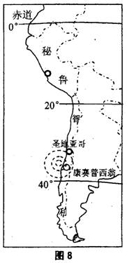(5)厄尔尼诺现象引起的全球气候异常倍受人们关注,回答下列问题。(8分)厄尔尼诺现象是指有的年份,_________________的现象,它常引起太平洋两岸气候异常:在热带太平洋东岸的表现是_______________,在太平洋西岸的表现是_______________,还使秘鲁等国渔业生产受到严重影响,其原因是_____________。