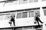 高层建筑的外观保洁工作一般由被称为“蜘蛛人”的保洁员 来承担.如图所示,保洁员由上到下对建筑物的玻璃幕墙进行清洁工作.设保洁员分别在五楼、三楼作业时,双腿伸直支撑身体(认为保洁员双腿与墙面始终保持垂直)并保持静止时,绳子对保洁员的拉力分别为T1、T2,保洁员所受墙面的支持力分别为F1、F2,则