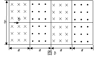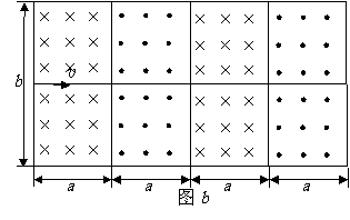 T,每个磁极的左右宽度为a=30 cm,垂直于纸面方向的长度为b=60 cm,忽略左右磁极间的缝隙,从上向下看两极间的磁场如图(b),当电子在磁极的正中间向右垂直于磁场方向射入时,求: