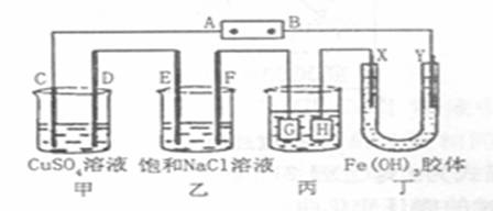 8、如下图所示的装置,C、D、E、F、X、Y都是惰性电极。将电源接通后,向乙中滴入酚酞溶液,在F极附近显红色。则以下说法正确的是( )