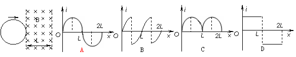 18.如图所示,两条平行虚线之间存在匀强磁场,磁场方向垂直纸面向里,虚线间的距离为L.金属圆环的直径也是L.自圆环从左边界进入磁场开始计时,以垂直于磁场边界的恒定速度v穿过磁场区域。规定逆时针方向为感应电流i的正方向,则圆环中感应电流i随其移动距离x的i-x图象最接近K^S*5U.C#