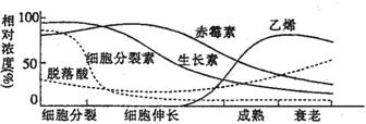 3.下图表示果实生长发育成熟过程中的激素变化情况,说法不正确的是