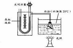 26.(16分) 使用下图装置,可测定植物的光合作用,开始时装置左右两侧的液面持平,即瓶内气压等于大气压,请回答: