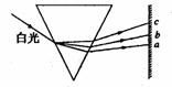 如图所示,一细束白光通过三棱镜折射后分为各种单色光,取其中a﹑b﹑c三种色光,并同时做如下实验:①让这三种单色光分别通过同一双缝干涉实验装置在光屏上产生干涉条纹(双缝间距和缝屏间距均不变);②让这三种单色光分别照射锌板;③让这三种单色光分别垂直投射到一条直光纤的端面上;下列说法中正确的是