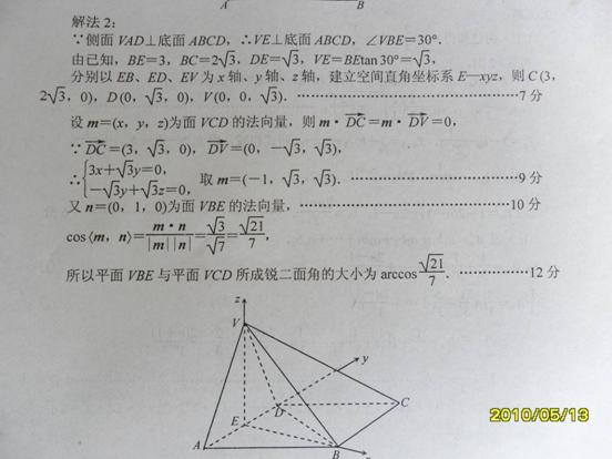 (Ⅱ)当直线VB与平面ABCD所成的角为30°时,求面VBE与面VCD所成锐二面角的大小.