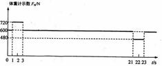 实验小组为了测量一栋26层的写字楼每层的平均高度(层高)及电梯运行情况,请一质量为m=60kg的同学站在放于电梯的水平地板上的体重计上,体重计内安装有压力传感器,电梯从一楼直达26楼,已知t=0至t=1s内,电梯静止不动,与传感器连接的计算机自动画出了体重计示数随时间变化经的图线,如下图。求:
