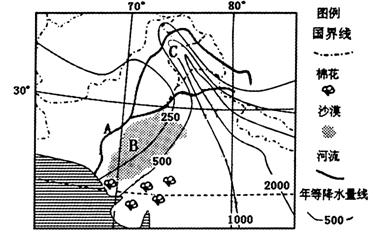 (3)分析图中棉花产区的优势自然条件。(8分)