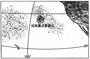 一支探险队于2009年8月乘坐“海星”号研究船从图中甲地启程,对漂浮在图中所示的“垃圾大陆”(在大洋人迹罕至的海域聚集了超过700万吨,面积达140万平方千米的垃圾)进行了科学考察,读图完成4-6题。