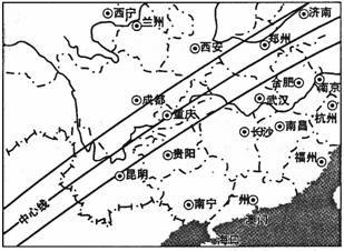 2010年1月15 罕见的日环食天象从非洲中部开始,经过印度洋、斯里兰卡、印度、缅甸进入我国,部分地区还可欣赏到“带食而落”(当日食还未复圆,太阳就落入地平线下)的奇妙景象。读“2010年日环食部分观测地区示意图”,回答7-9题。