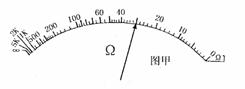 倍率。若这时刻度盘上的指针位置如上面图甲所示,那么测量结果是_________![]()