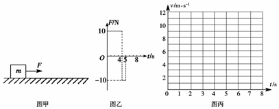(2)在图丙的坐标系中画出物体在8s内的v- t 图象;(要求计算出相应数值)