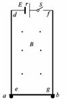 23.(20分)如图所示,下端带弯钩的de和fg是两根足够长且固定在竖直方向上的光滑金属导轨,导轨间距离为L,电阻忽略不计。在导轨的上端接电动势为E,内阻为r的电源。一质量为m、电阻为R的导体棒ab水平放置于导轨下端e、g处,并与导轨始终接触良好。导体棒与金属导轨、电源、开关构成闭合回路,整个装置所处平面与水平匀强磁场垂直,磁场的磁感应强度为B,方向垂直于纸面向外。已知接通开关S后,导体棒ab由静止开始向上加速运动,求: