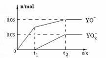 (5)电解饱和J溶液产物之一为Y2,将一定量的Y2通入一定浓度的苛性钾溶液中,两者恰好完全反应(已知反应过程放热),生成物中三种含Y元素的离子,其中两种离子的物质的量(n)与反应时间(t)的变化示意图如右图所示。该苛性钾溶液中KOH的质量是 ▲ ,至t2时该反应中转移电子的物质的量是 ▲ 。