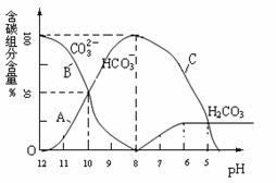 (Ⅰ)常温下在20mL0.1 mol·Lˉ1Na2CO3溶液中逐滴加入0.1 mol·Lˉ1 HCl溶液40mL,溶液的pH逐渐降低,此时溶液中含碳元素的微粒物质的量浓度的百分含量(纵轴)也发生变化(CO2因逸出未画出),如右图所示