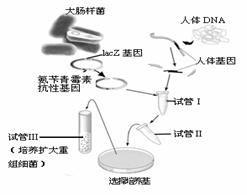 (1)作为受体大肠杆菌应__________________________,以方便筛选已导入重组质粒的受体大肠杆菌。取用氯化钙溶液处理(增加其细胞壁的通透性)过的受体大肠杆菌,置于试管Ⅱ中,并加入 。