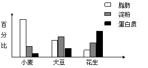实验测得小麦、大豆、花生3种植物干种子中三大类有机物的含量,如图所示。有关种子萌发叙述不正确的是(