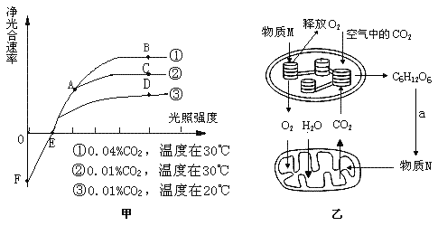 (2)乙图中物质M、N分别是 ________________ ,过程a反应的场所是 ________ 。此时农作物的光合作用强度 _______ (大于、等于、小于)呼吸作用强度。