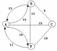 (1分)右图是某配送中心的配送线路图,该配送中心位于A点,现要将一批冰箱配送到位于B、C、D处的3家商场,线上数字为该段路程的长度(单位:km),最优的配送线路为( )