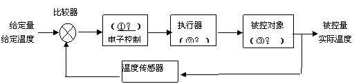 (2)控制过程中,通过温度传感器检测水温,并以电子信号形式传递给控制端,与来自温度选择器的信号进行比较。这个过程称为 。