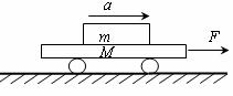 如图所示,在光滑平面上以水平恒力F拉动小车和木块,让它们一起做无相对滑动的加速运动,若小车质量为M,木块质量为m,加速度大小为a,木块和小车间的动摩擦因数为μ。对于这个过程,某同学用了以下4个式子来表达木块受到的摩擦力的大小, 正确的是