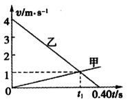 甲和乙两物体在同一直线上运动,它们在0-0.4s 内的v-t 图象如图所示。若两物体均只受到彼此的相互作用,则甲、乙质量之比和图中时刻t1分别为