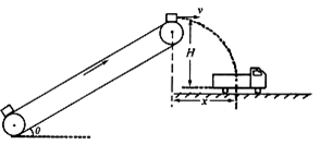 ,传送带的主动轮和从动轮半径相等,主动轮轴顶端与运煤车底板间的竖起高度H = 1.8 m ,与运煤车车箱中心的水平距离x = 1.2m 。现在传送带底端由静止释放一些煤块(可视为质点),煤块在传送带的作用下