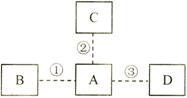 (5分)A、B、C、D均为初中常见物质,转化关系如图所示。试回答下列问题。