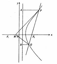 方法二:设直线PQ的倾斜角为θ,由于直线PQ与双曲线右支有二个交点,