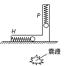3.(08重庆)20.某地区地震波中的横波和纵波传播速率分别约为4km/s和9km/s。一种简易地震仪由竖直弹簧振子P和水平弹簧振子H组成,如图所示。在一次地震中,震源在地震仪下方,观察到两振子相差5s开始振动,则 ( )