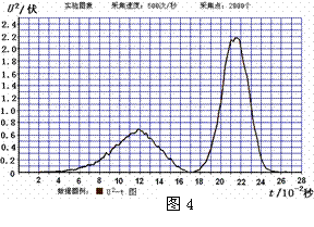 ②若螺线管线圈的电阻是90Ω,又从图4中U2-t图线与时间轴所围的面积约为103格,可以计算磁铁穿过螺线管过程中,在回路中产生的总电热是__________焦耳。