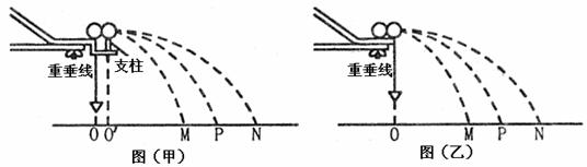 ⑴(5分)“验证动量守恒定律”的实验装置原来的教科书采用图(甲)的方法,经过编者修改后,现行的教科书采用图(乙)的方法,两个实验装置 的区别在于①悬挂重垂线的位置不同;②图(甲)中设计有一个支柱(通过调整,可使用两球的球心在同一水平线上;上面的小球被碰离开后,支柱立即倒下),图(乙)中没有支柱。对于图(甲)入射小球和被碰小球做平抛运动的抛出点分别在通过O,O′点的竖直线上,重垂线只确定了O点的位置。