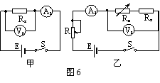 为较准确地测定一电阻值Rx约为1.2Ω的电阻丝的阻值,已有甲、乙两位同学分别设计了如图6甲、乙二个电路图来测量Rx。但甲、乙两电路设计均有不合理之处,请指出存在的问题(各图中至少指出一处问题)。